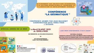 Dans le cadre du parcours éducatif « Science et vie contemporaine », la DACST et la DA-EDD invitent l’ensemble des élèves et des personnels éducatifs à une conférence sur la collecte, traitement et diffusion des données géographiques.